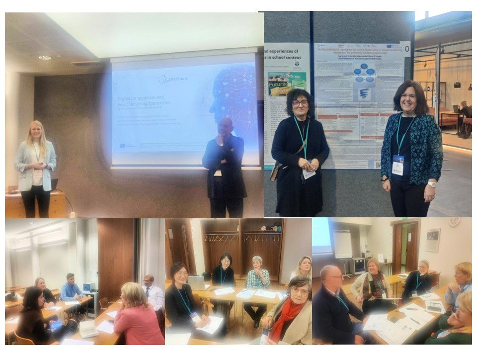 As announced, the CGC-DigiTrans project was presented at the IAEVG international conference in Jyväskylä on November 12-14, 2024. hashtag#IAEVG More than five hundred people attended the conference, and it was a great opportunity to discuss our project and the Roundabout methodology. Jenny Schulz and Jan Woldendorp carefully prepared the workshop titled ‘Digital competences and new counselling approaches for CGC professionals riding the wave of change’ that allowed about 15 participants to glance at the digital competences model developed in the project's first phase. After a reflective activity, the Roundabout methodology was introduced and the case of Julia was analyzed. A lot of questions were raised about the project and the methodology. We thank all the participants for their interest in the project and the fruitful discussion. We are aware that the 90 minutes of workshop allows us to provide only a summary of the work done in two years of the project and we are glad to have stimulated curiosity and questions in the participants. Accordingly, we invite you to explore the website CGC-DigiTrans and attend the online course. In addition during the conference a poster was presented by Lea Ferrari, Teresa Maria Sgaramella and Ilaria Di Maggio on the Italian practitioners involved in the project. In the study 1 the opinions of the Italian CGCs about the attention devoted to digitalization of their clients were presented. The study 2, instead, showed their perceptions about the roundabout methodology preparatory course they attended.