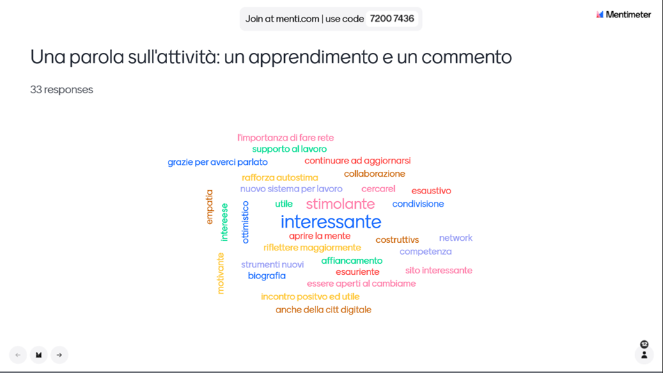 positive feedback in the discussion and with the 'one word feedback' with mentimeter