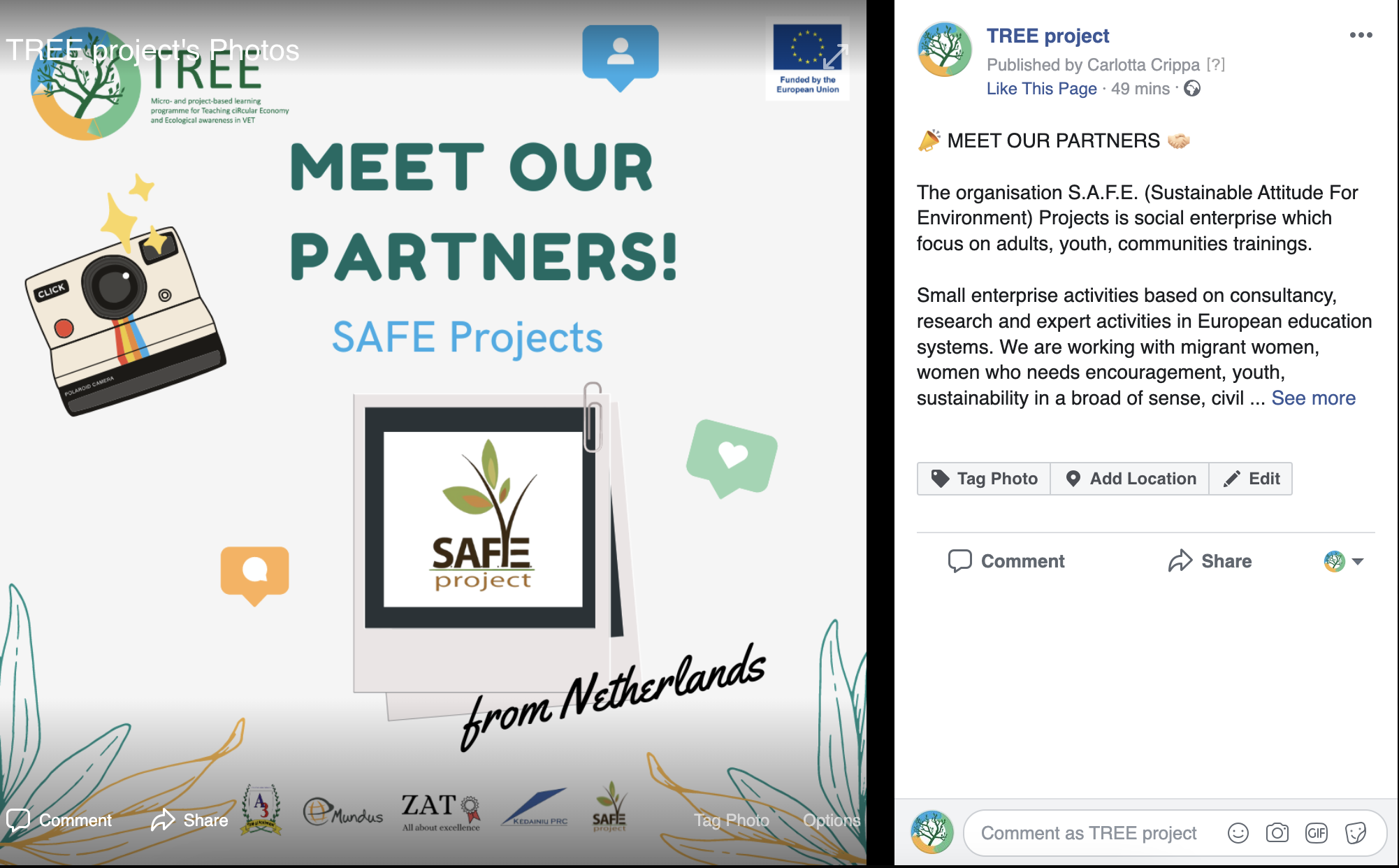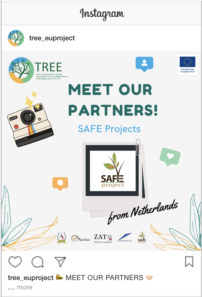 A post was shared on LinkedIn, Instagram and Facebook about a new format called "Meet our partners". In this format people are introduced with all project partners (one at a time) and they can get to know better what they work on.