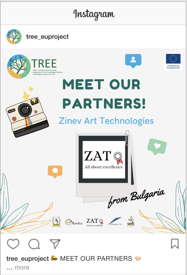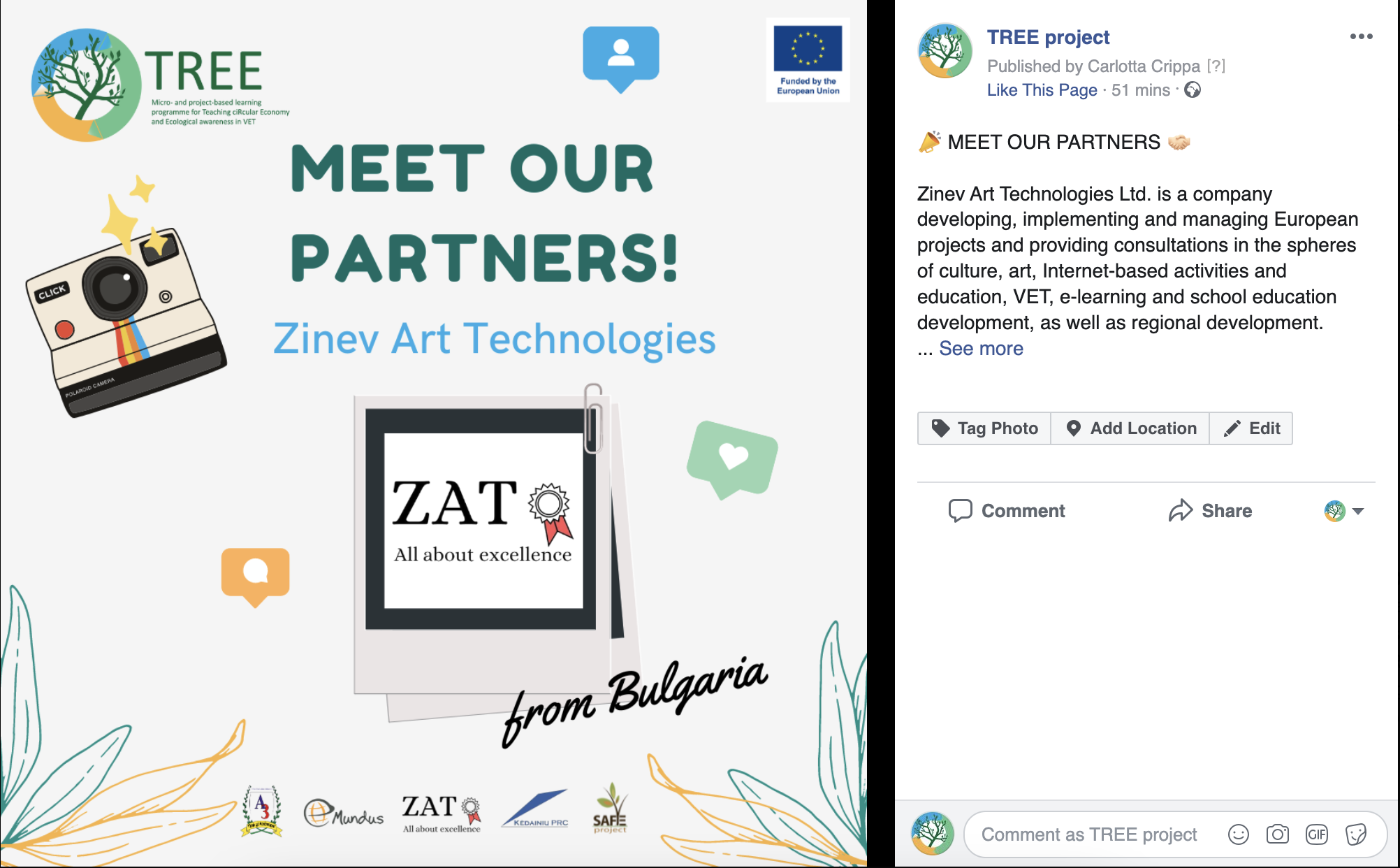 A post was shared on LinkedIn, Instagram and Facebook about a new format called "Meet our partners". In this format people are introduced with all project partners (one at a time) and they can get to know better what they work on.