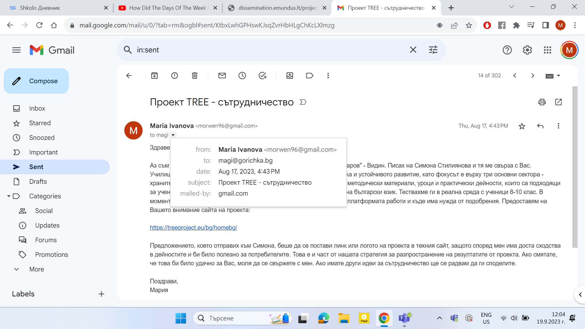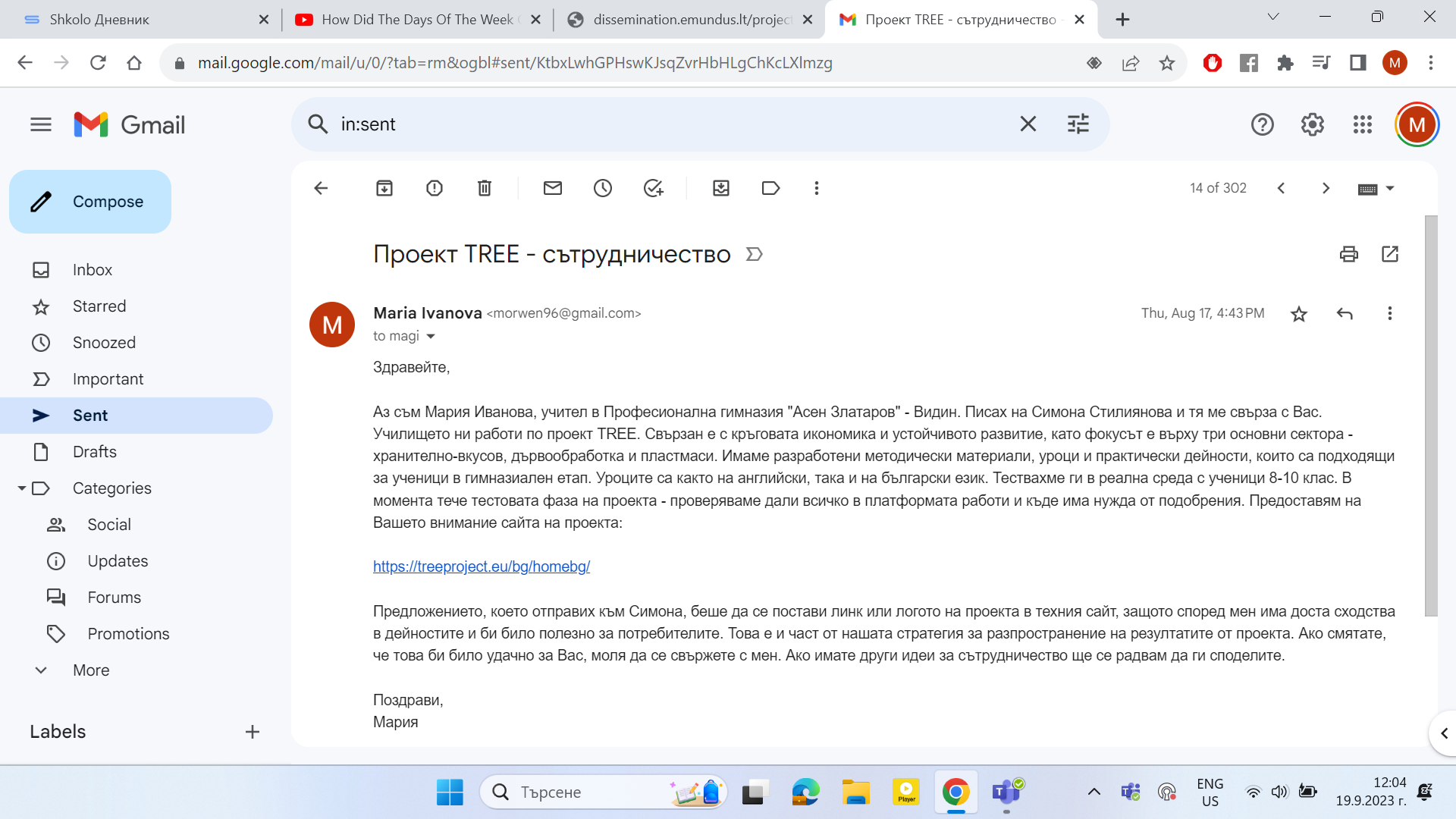 Sending informative letters to organizations with activities related to our project.