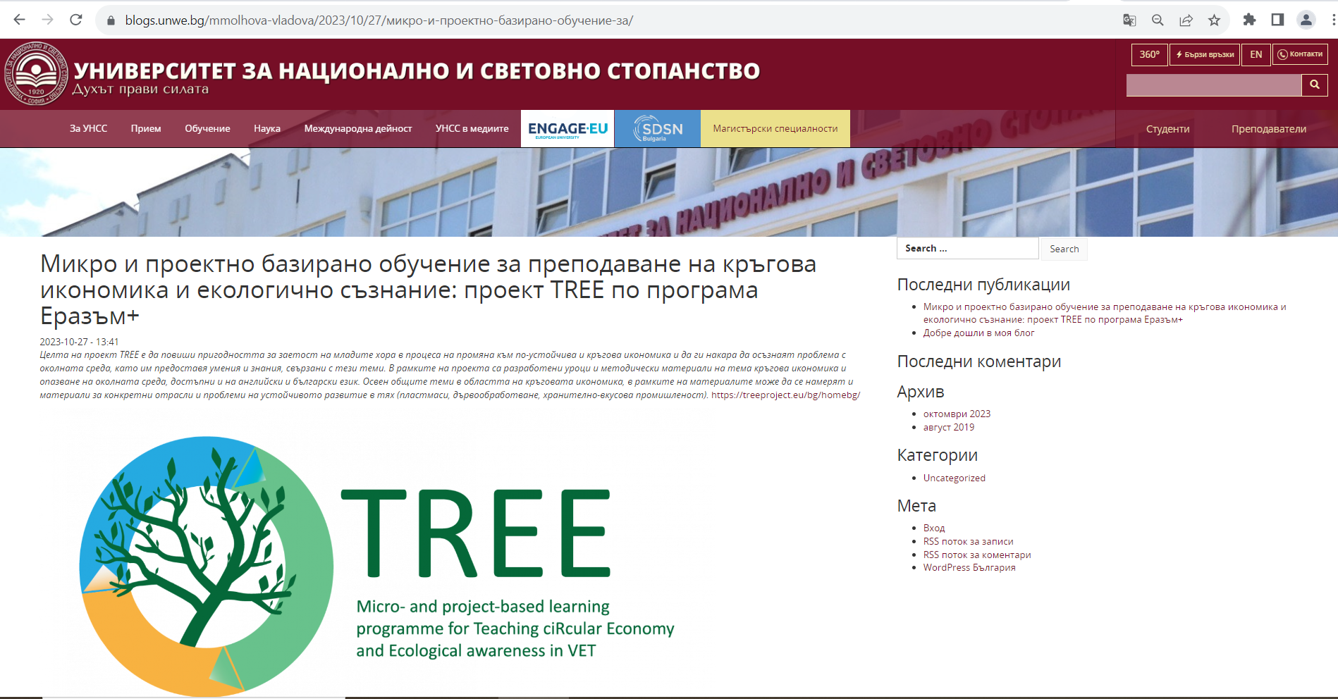 The blog is maintained by the University of National and World Economy and is visible to all her students (300 new students per year) and all students of the UNWE (more than 16 000), where the name of the project and a link to its project is published.