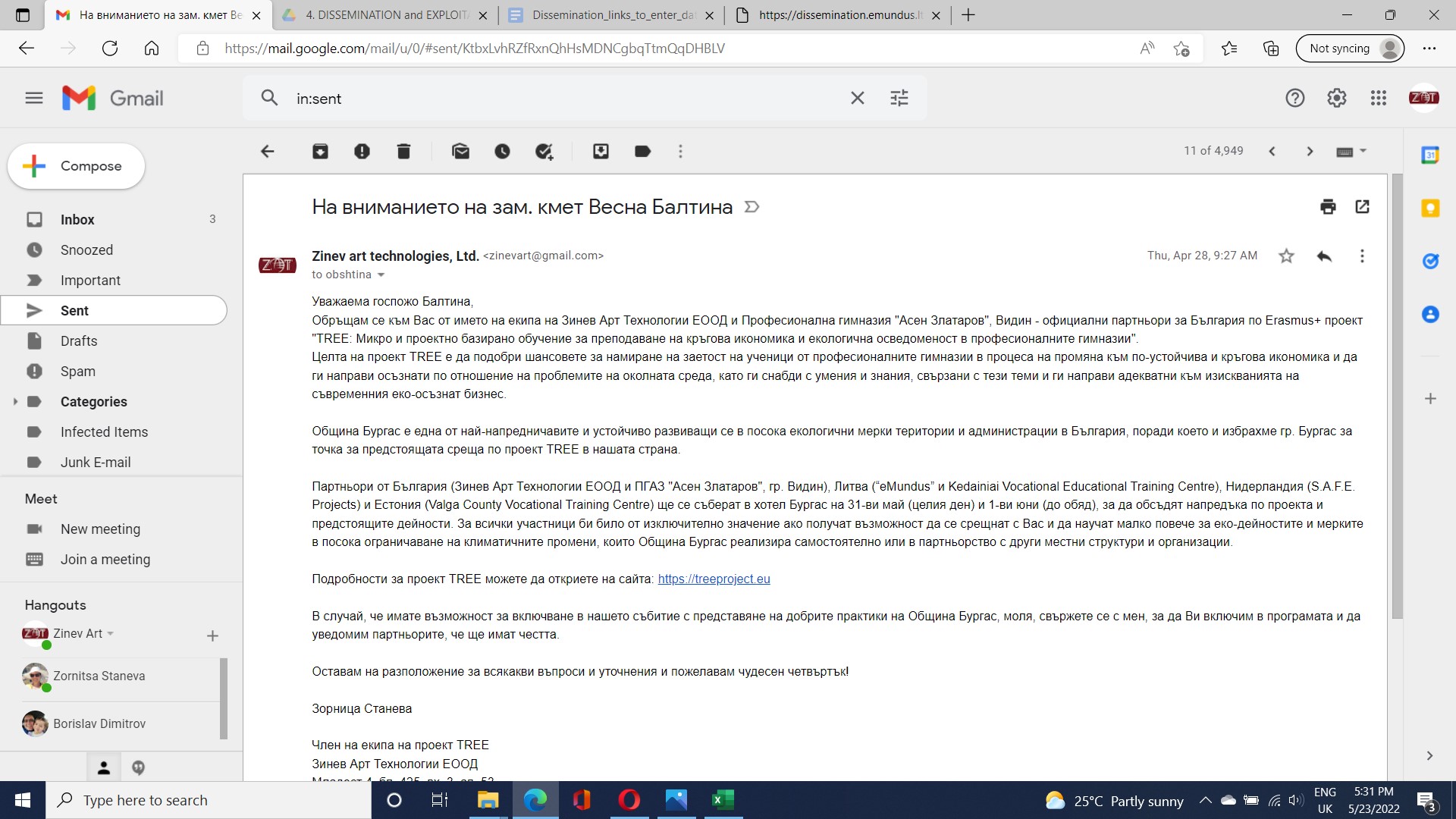 Information about the project and the project web-site was sent to the Municipality of Burgas and the vice-mayor and the department responsible for climate change and environmental.